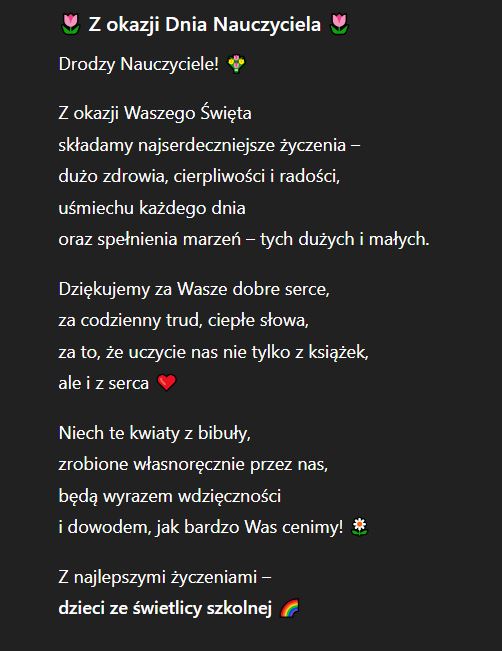Życzenia dla nauczycieli od dzieci ze świetlicy szkolnej